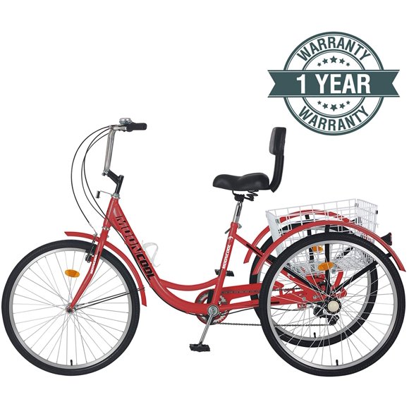 Binzii Adult Tricycles 3 Wheel Bikes For Adults Tricycle For Adults 20inch 3 Wheel Bicycle 1 Speed Pedal Bikes Double Chain Shock Absorbing Front Fork For Parents To Pick Up Sports Outdoors